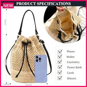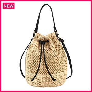 Straw Bucket Bag Woven Crossbody Hobo Drawstring Purse Beach Handbag
