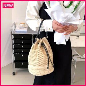 Style: Woven bucket bag with drawstring closure