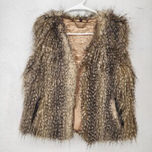 Chic faux fur vest by Express. Features a blend of brown and tan hues. Perfect for layering. A tad too small for me. Vest has a small hole in the pocket (see last picture)