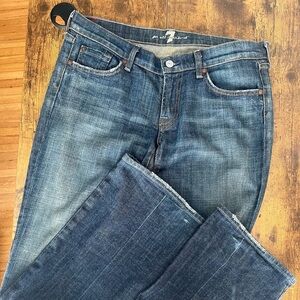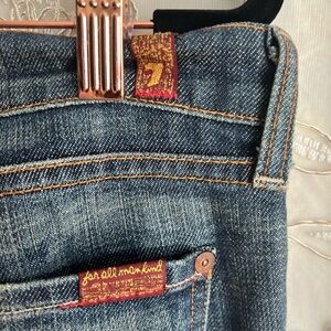 These super unique, 7 For All Mankind, blue denim jeans have the coveted pink rhinestones pocket detail. Loving cared for! Size 30.