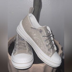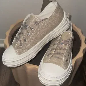 A super chunky stacked platform bumper sole refreshes the iconic silhouette of this classic sporty sneaker by Very G. These edgy lace ups aren't your average sneakers - with a cushioned footbed for all-day comfort and sparkle laces for a touch of glam, you'll be turning heads with every step!