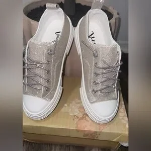 Very G Womens Aman Glitter 2 Lace Up Canvas Sneaker, Gold