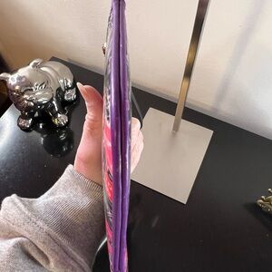 Features a striking purple trim and zip closure.