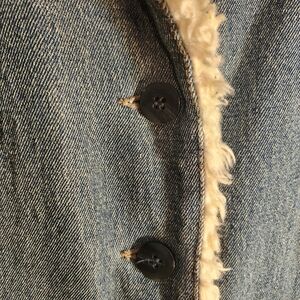 Classic blue denim jacket with soft cream sherpa lining cuffs,collar & front. Ideal for layering.