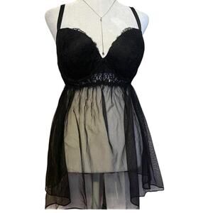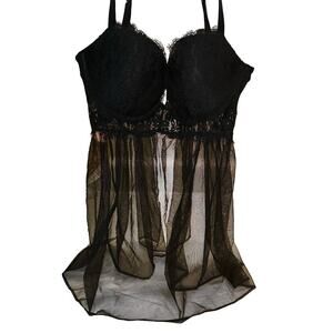 Victoria's Secret Babydoll Nightie Mesh Lace Padded Cups Adjustable Black Sz 36c