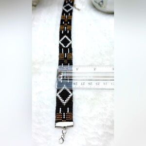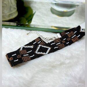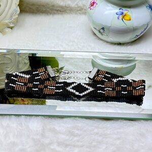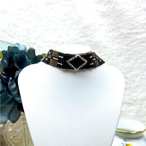 Tribal Style Beaded Choker Necklace - Black, White and gold color