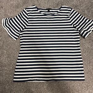 J. Crew Shirt Women’s S Navy White Striped Ruffled Sleeves
