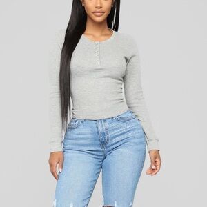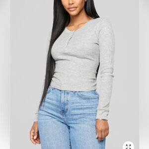 Elevate your wardrobe with this chic Fashion Nova gray long sleeve top. Perfect for any occasion, this versatile piece offers both comfort and style. (I TAKE LOW BALL OFFERS)