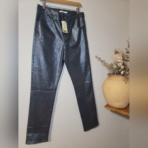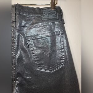 Elevate your denim collection with these stunning Levi's 724 High Rise Straight Leg jeans, new with tags. The metallic sheen silver/ black color offers a chic, sophisticated alternative to classic denim, perfect for adding an edgy yet dressy touch to any outfit. old money, mob wife fairy and retro Glam style.