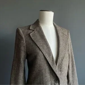 banana republic blazer, brown tweed blazer, wool blend blazer, tailored blazer women, classic blazer jacket, neutral blazer, heritage tweed jacket, minimalist blazer, quiet luxury blazer, workwear blazer, academia style blazer, fall winter blazer, structured blazer, capsule wardrobe blazer, womens size 0 blazer, brown wool jacket, timeless blazer