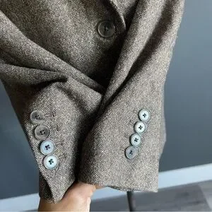 A beautifully tailored Banana Republic blazer in a rich brown tweed wool blend, designed with timeless structure and understated elegance. The fabric has depth and texture—subtle flecks woven throughout—giving it a classic, heritage-inspired feel while remaining effortlessly modern.