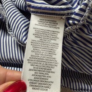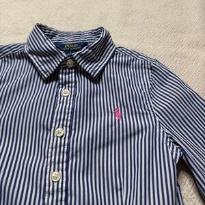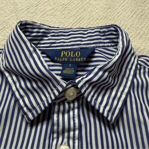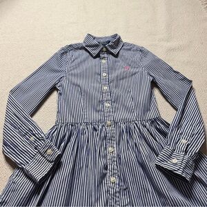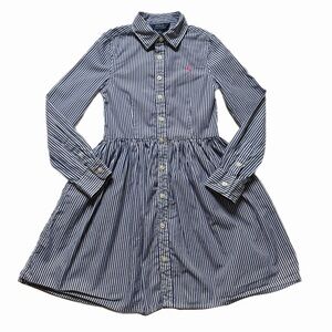 Ralph Lauren Polo Girls White Blue Striped Poplin Cotton Shirt Dress 7 Preppy