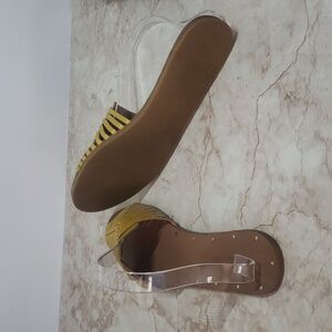 Step into style with these chic yellow slide sandals. Perfect for casual outings, these sandals offer both comfort and flair.
