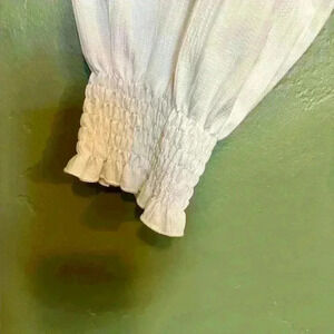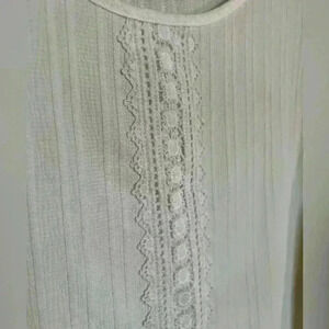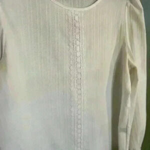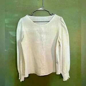White Long Sleeve Puff Sleeve Blouse with Lace Embellishment, Size XL