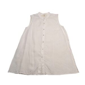 Eileen Fisher White Sleeveless Button Front Tunic Top Minimal Linen Core Medium