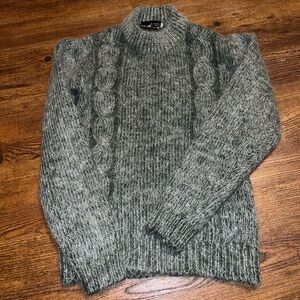 Green & Gray Wool, Mohair Mock Neck Long Sleeve Chunky Cable Knit Sweater Size S