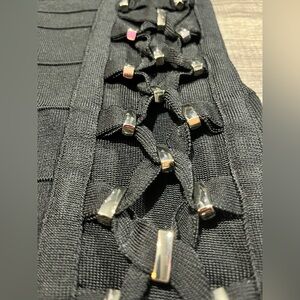Guess V-neck Dress In Black Size XXL Gold-Tone Hardware Bandage