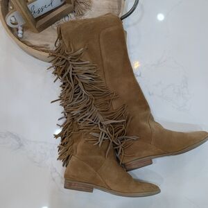 Aldo Genuine Leather Tan Fringe Suede Knee-High Boots Size 6.5