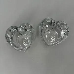 2 Crate & Barrel heart shaped glass votive holders