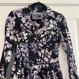 All orders ship within 1-3 business days. This women's longsleeve mini dress is made by Anthropologie. Color is black with purple flowers. Size is 2P. Great condition. Fabric is 100% cotton. Make me an offer!