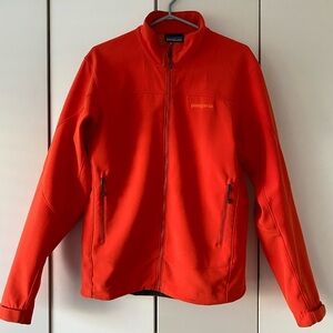 A men’s zip-up from Patagonia (Adze Hybrid Jacket) in orange with Polartec stretch-woven fabric in very good condition. Size M. It’s a little dirty on the front left bottom as shown in the last photo otherwise it’s almost like brand new.