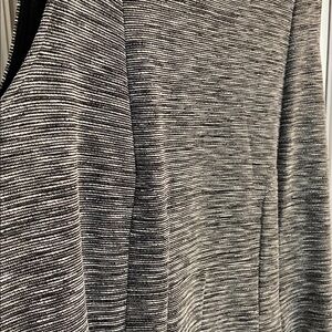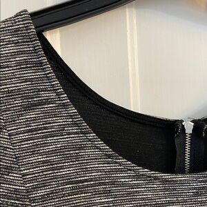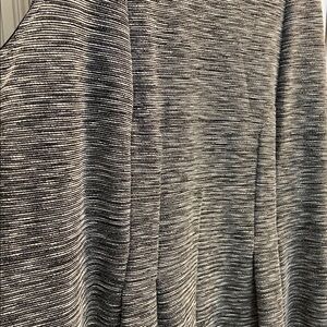This sleeveless, knee-length dress in a versatile dark grey shade features a subtle textured pattern reminiscent of tweed. Fit and flare style with a pleated front for a flattering fit. Made from a comfortable polyester-elastane blend, it has stretch and is perfect for both casual and semi-formal occasions. Designed and sold through Penningtons, it offers a stylish yet practical addition to your wardrobe. Fabulous back zipper. It’s lovely worn pinafore style with a turtleneck or blouse underneath. Perfect layered under a jacket. Pair it with boots and a great bag!