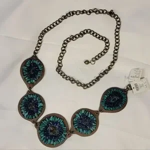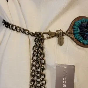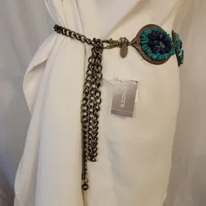 Chico's Leather Bronze Hip Belt Torquoise Teal Blue Stones Chain Concho Boho Y2K