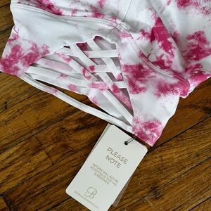Bombshell Sportswear Pink/White Tie-Dye Sexy Back Leggings & Cross My Heart Bra