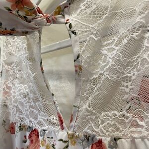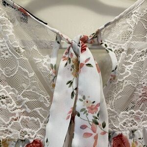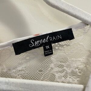 Embrace elegance with this Sweet Rain blouse, featuring a cream base with delicate pink floral patterns. The sleeveless design and tie back detail enhance its flowing silhouette, crafted from a lightweight fabric for a breezy feel.