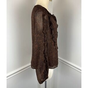 WHITE HOUSE BLACK MARKET Black & Brown Animal Print Ruffle Top | Small