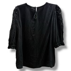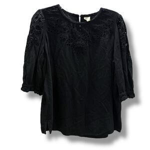 Matilda Jane Good Hart Westlake Eyelet Black Blouse Elbow Length Sleeves XL