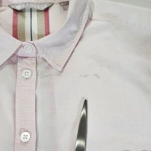 Athleta Shirt Womens Medium Light Pink Button Down Long Sleeve Stripe