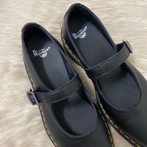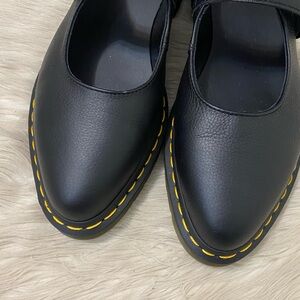 Dr. Martens Elphie Black Virginia Leather Mary Jane Shoes Chunky Ballet Flat 10