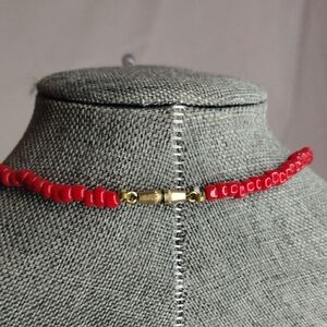 This elegant necklace features vibrant red and white beads, perfect for adding a pop of color to any outfit. Ideal for both casual and formal occasions.