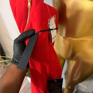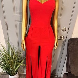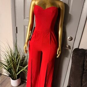 Elevate your style with this chic strapless red jumpsuit. Perfect for any event, it combines elegance and comfort effortlessly.