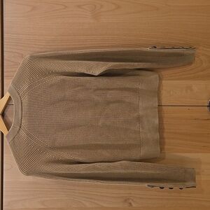 Stay cozy and stylish with this elegant tan sweater. Perfect for any occasion. camel color, medium, bought direct from France, tiny tiny pull at the front.