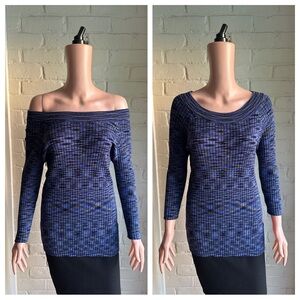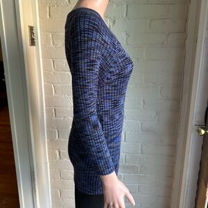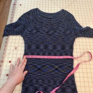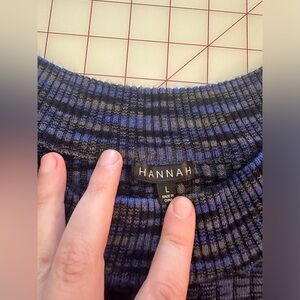 Hannah size large black and indigo body con long sleeve scoop neck sweater