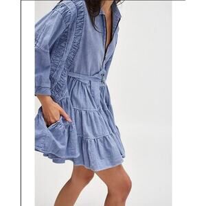 Free People Hampton Mini Dress Size Medium Blue Cotton