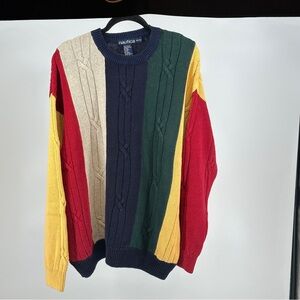 Nautica Vintage 90’s Men's XL Colorblock Cable Knit Crewneck Sweater Cotton