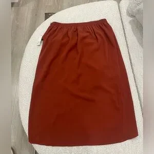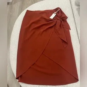 Elevate your style with this chic asymmetrical rust skirt. Perfect for adding a touch of elegance to any outfit.
