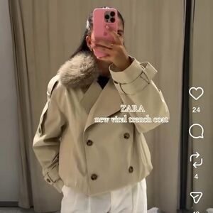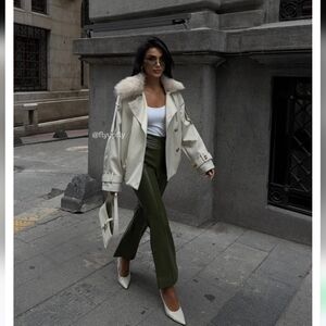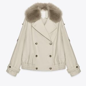 ZARA WATER REPELLENT SHORT TRENCH COAT FUR Size XL