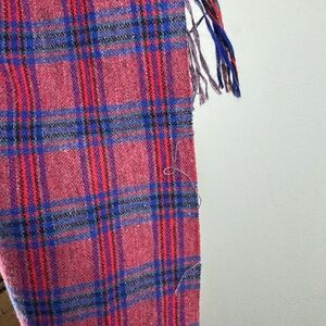 Vintage wool plaid scarf with fringe on ends. Has one small hole along edge and some of the topstitching is no longer there. In otherwise good preowned condition from a smoke free home. Measures approx 65”X10” not including fringe.