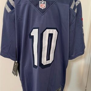 This is brand new with tags, Drake Maye number 10 New England Patriots football Jersey.