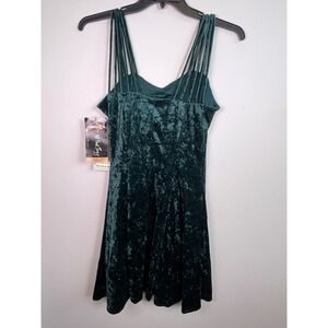 VTG 90s All That Jazz Crushed Velvet Spaghetti Strap Mini Dress Green Size