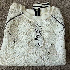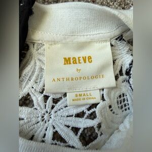 Anthropologie Maeve lace long sleeve white top black cuffs Small SO CUTE! Zipper