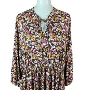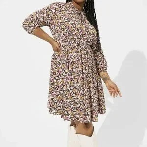 Torrid Floral Babydoll Dress Boho Cottagecore Long Sleeve Pink Purple 2X