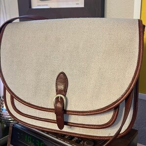 Large Romeo bag in smooth calf leather with white canvas/linen flap and gussets. A rare colorway you don’t see posted often. Including a Sezane mini pouch/pouchette, but is missing the button loop clasp.