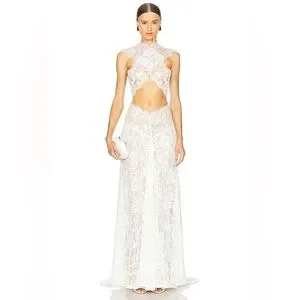 NWOT BRONX AND BANCO Naia Lace Gown in White Wedding Evening Gown