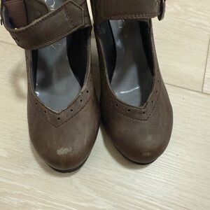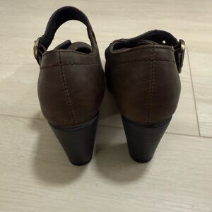 3/$10 Catwalk Brown Buckle Closed Toe Heels