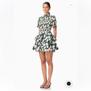 elliatt rosey green & black floral short sleeve smocked mini ruffle dress small